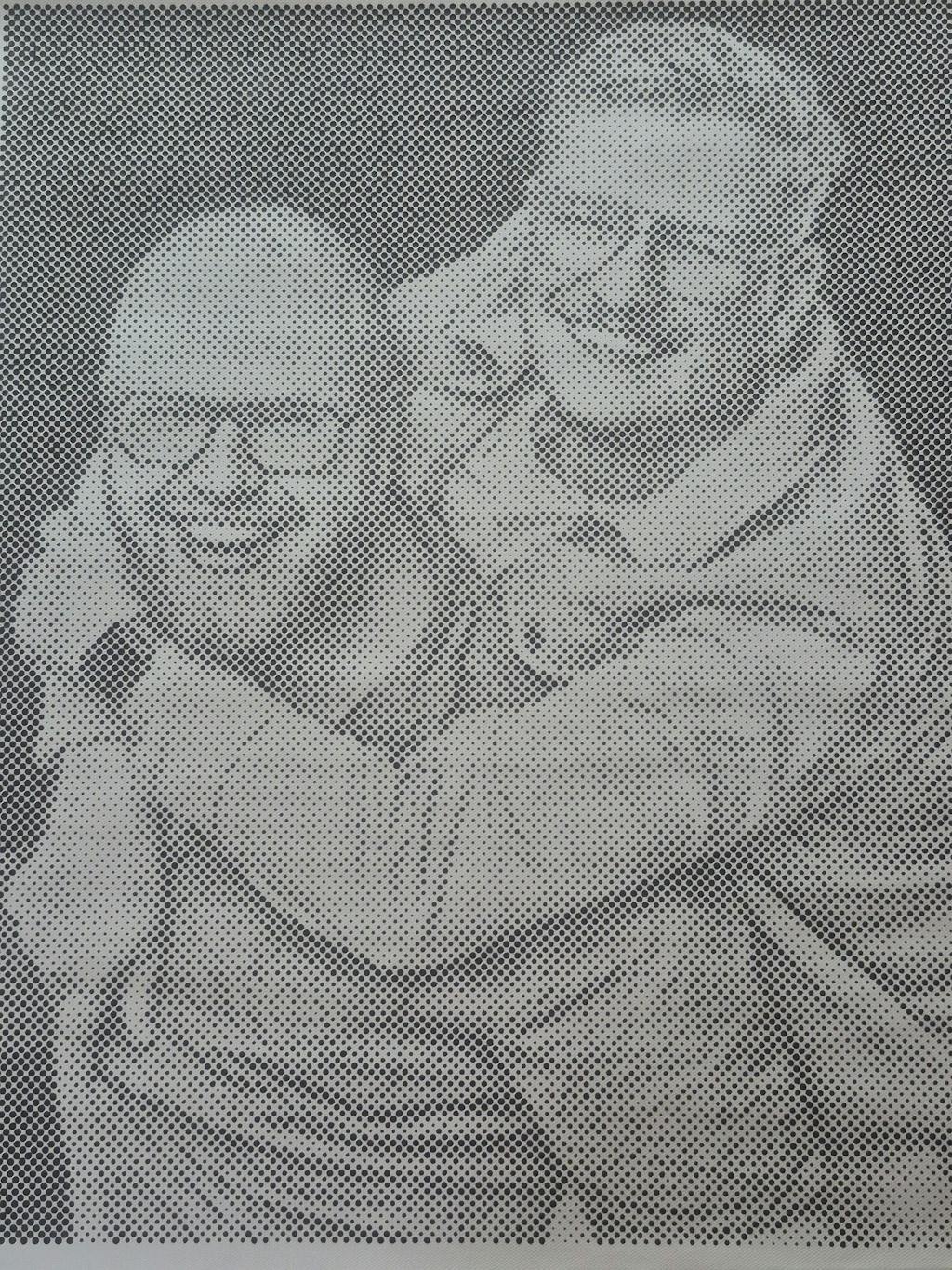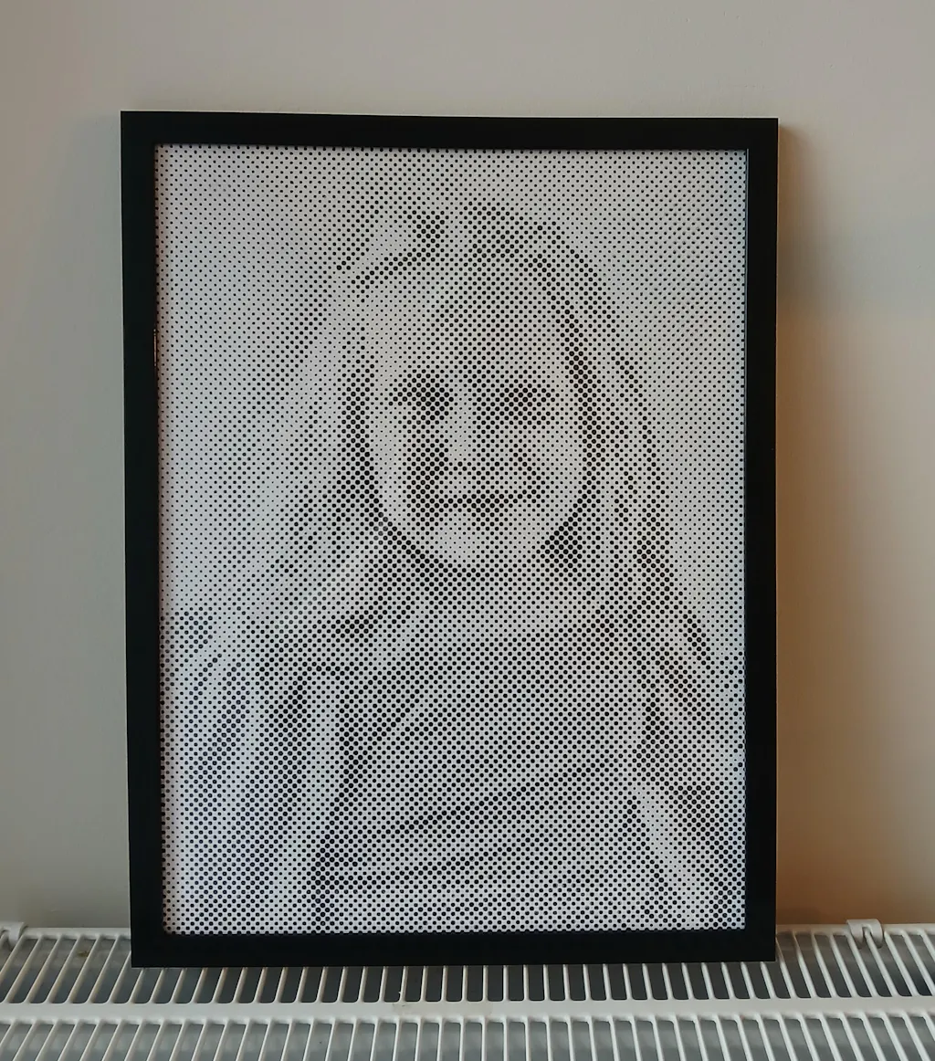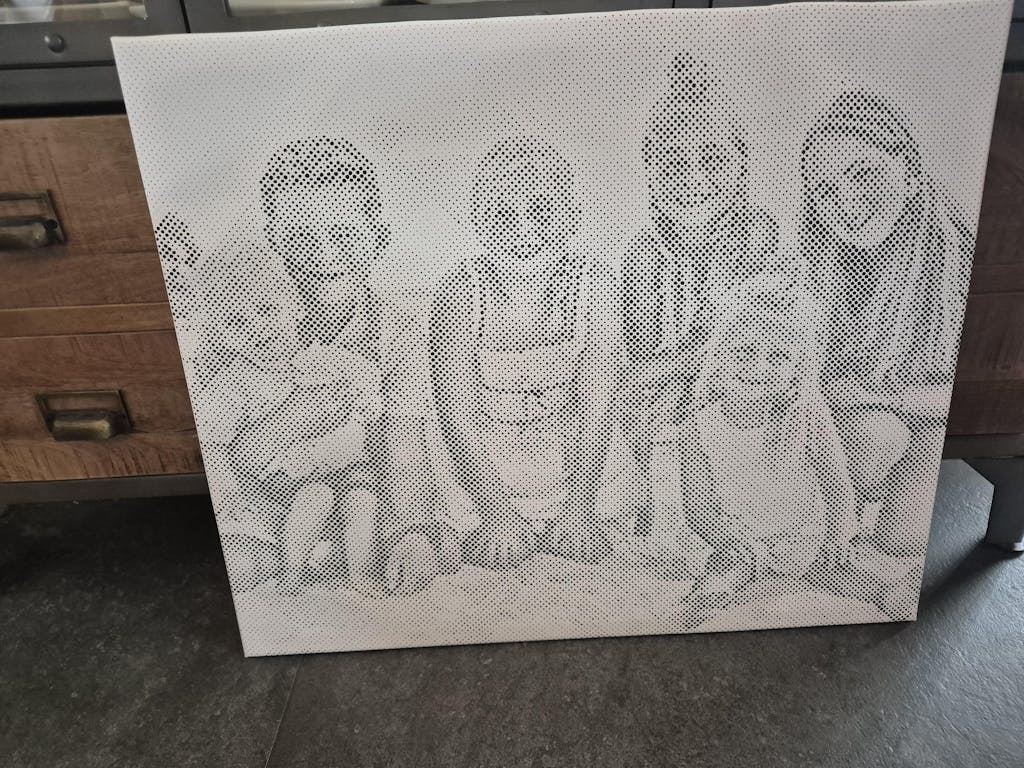 Wij transformeren je foto naar een patroon van cirkels op canvas van hoge kwaliteit.