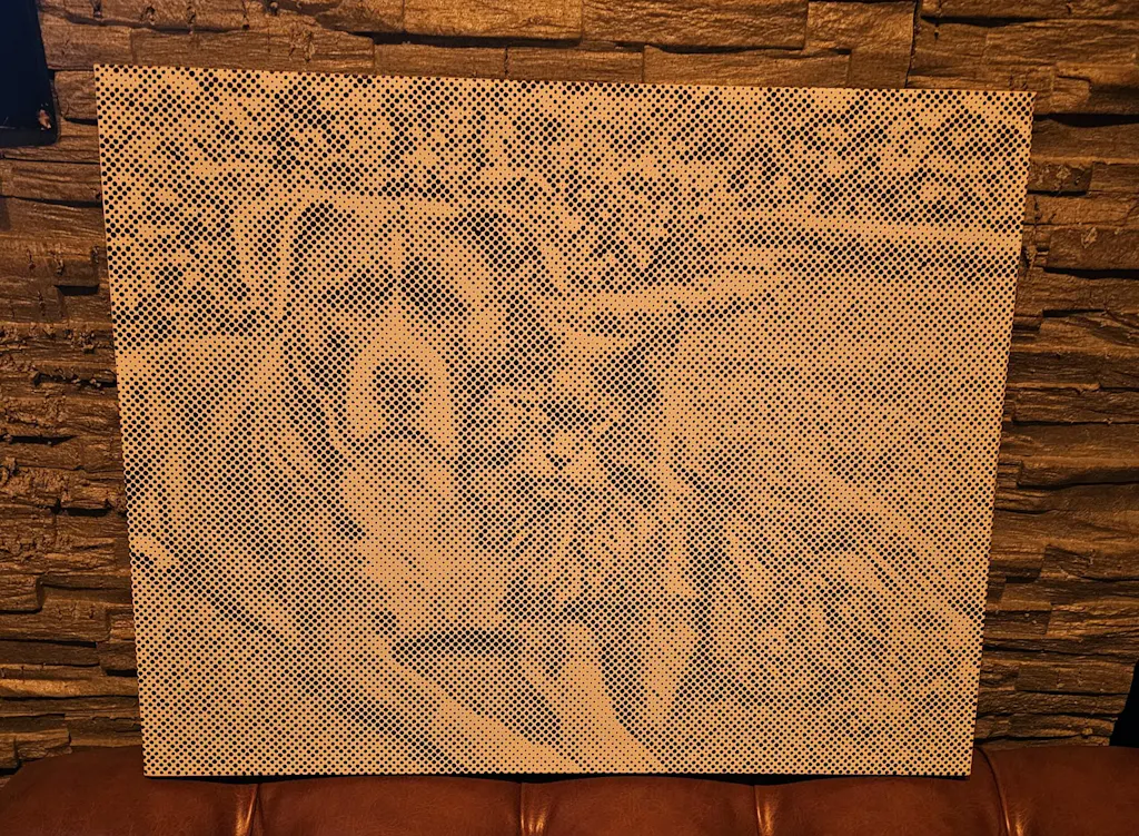 Wij transformeren je foto naar een patroon van cirkels op canvas van hoge kwaliteit.