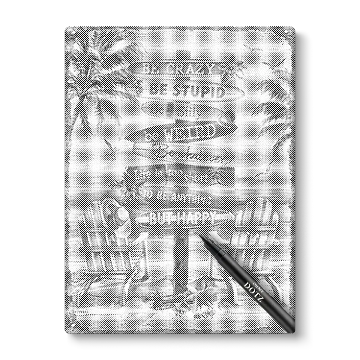 De steentjes zijn vervangen voor stiften waarmee je jouw foto tot leven brengt met stippen.