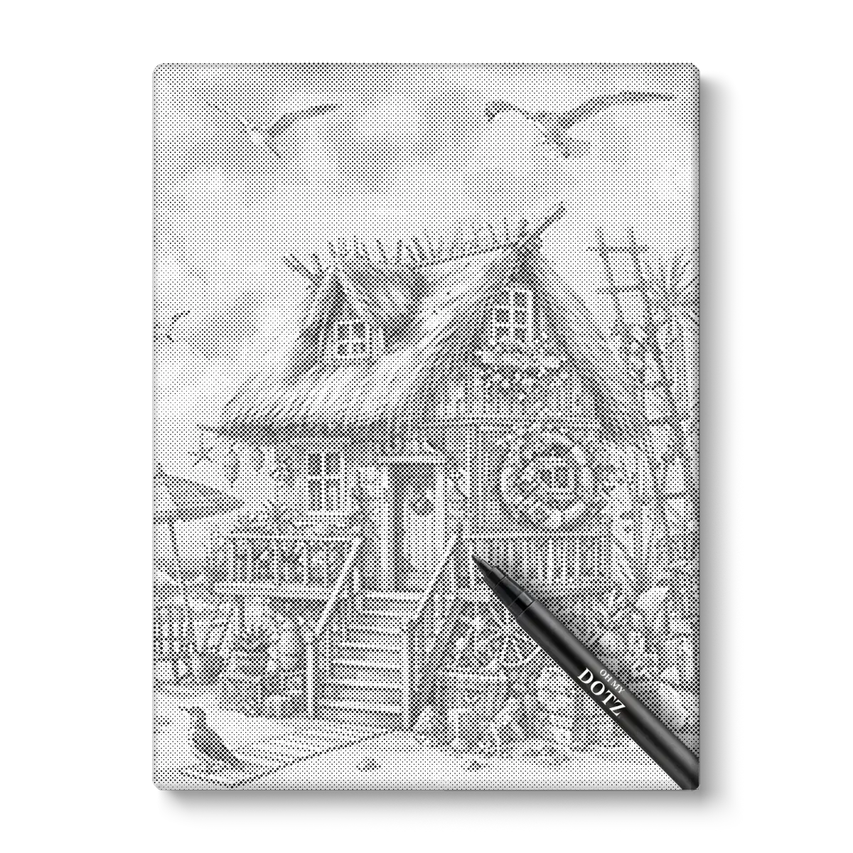 De steentjes zijn vervangen voor stiften waarmee je jouw foto tot leven brengt met stippen.