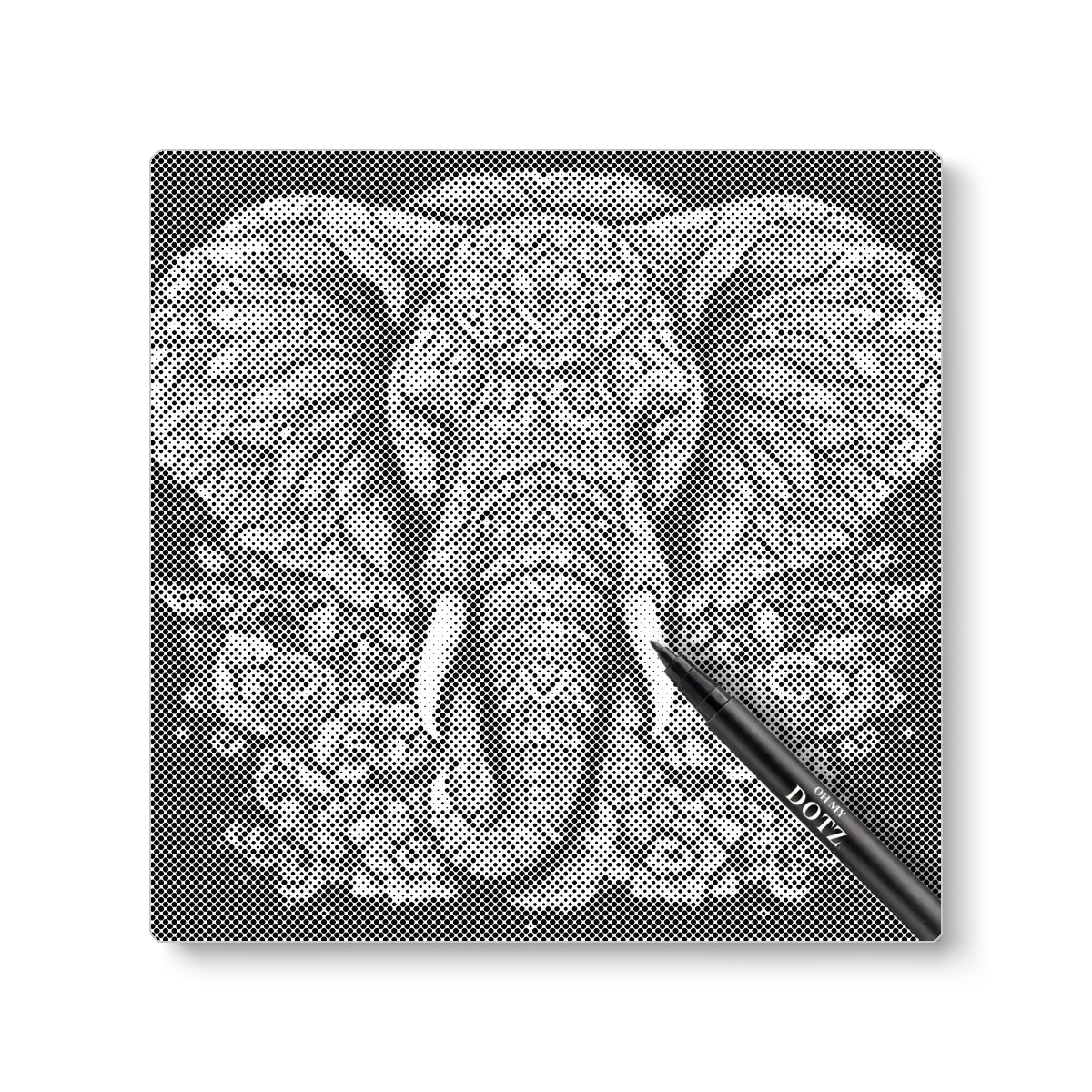 De steentjes zijn vervangen voor stiften waarmee je jouw foto tot leven brengt met stippen.