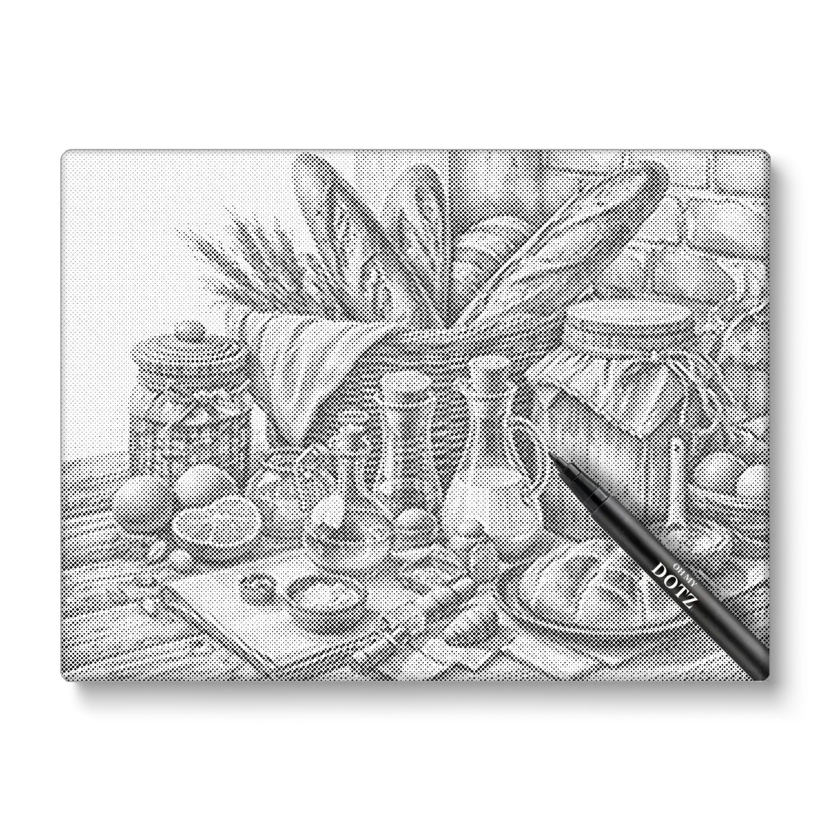 De steentjes zijn vervangen voor stiften waarmee je jouw foto tot leven brengt met stippen.