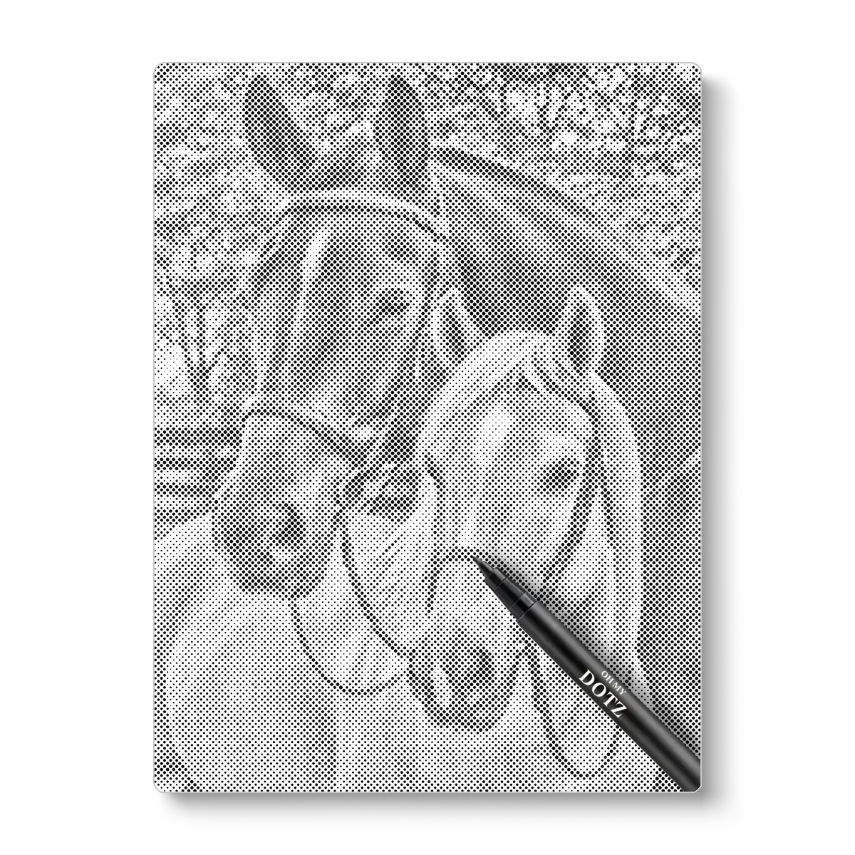 De steentjes zijn vervangen voor stiften waarmee je jouw foto tot leven brengt met stippen.