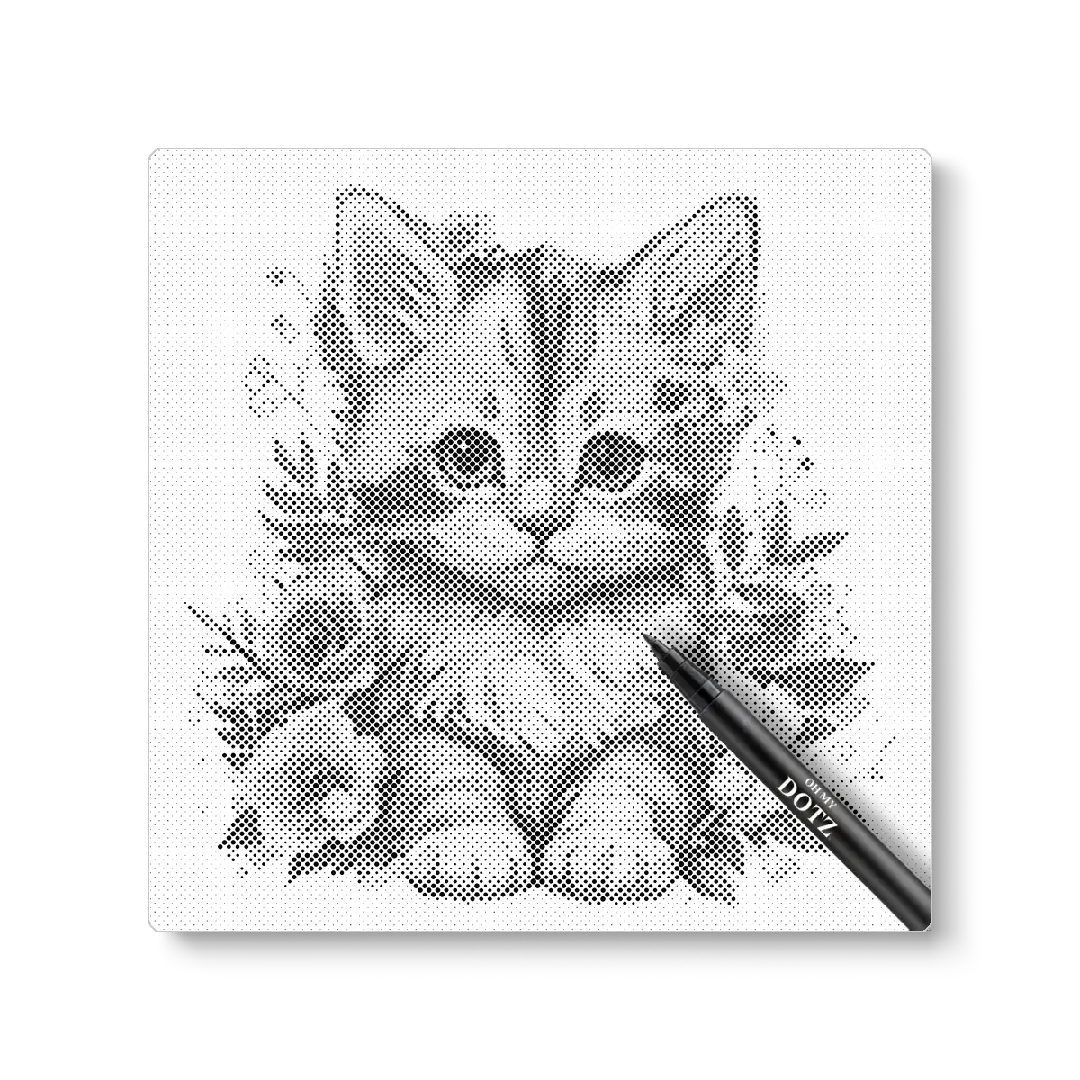 De steentjes zijn vervangen voor stiften waarmee je jouw foto tot leven brengt met stippen.