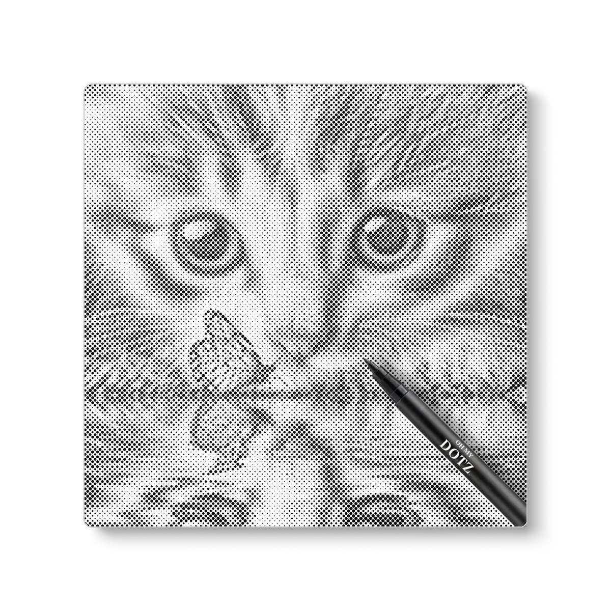 De steentjes zijn vervangen voor stiften waarmee je jouw foto tot leven brengt met stippen.