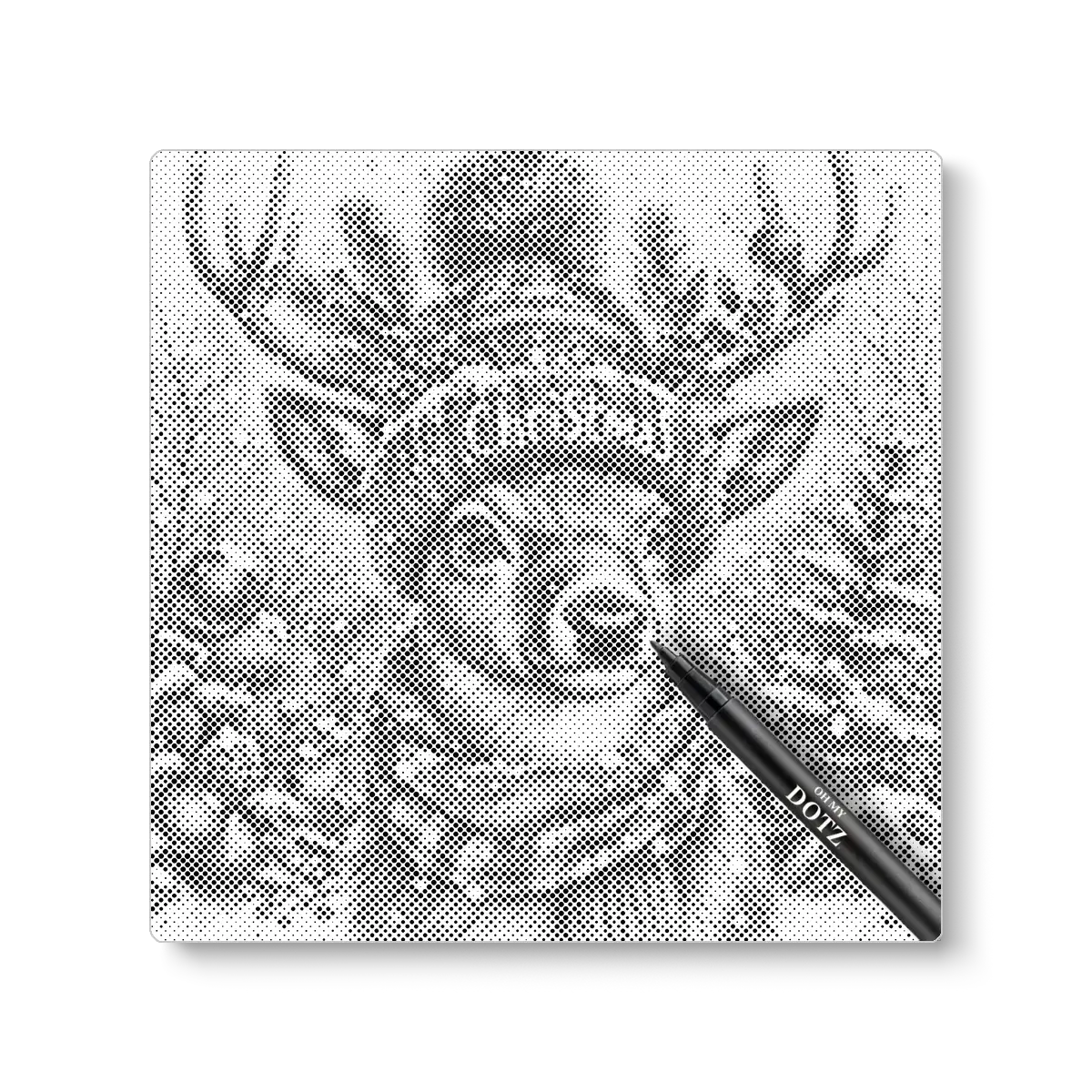De steentjes zijn vervangen voor stiften waarmee je jouw foto tot leven brengt met stippen.