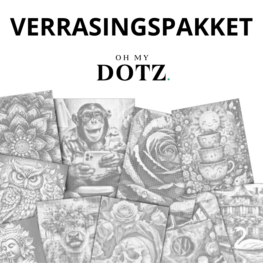 Ontdek de magie van dot painting met dit unieke verrassingspakket! Je ontvangt maar liefst 5 verschillende dot paintings in verschillende formaten: