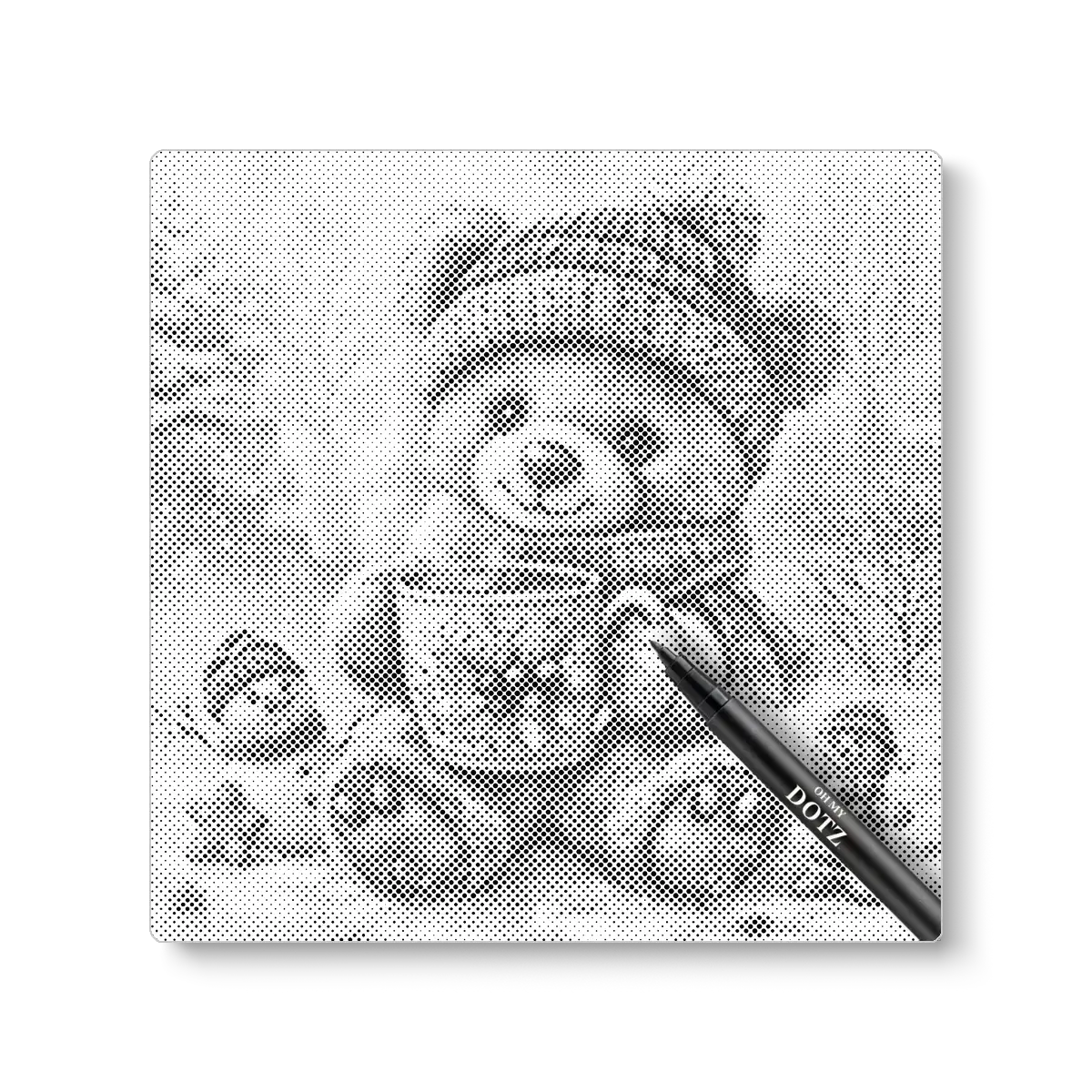 De steentjes zijn vervangen voor stiften waarmee je jouw foto tot leven brengt met stippen.